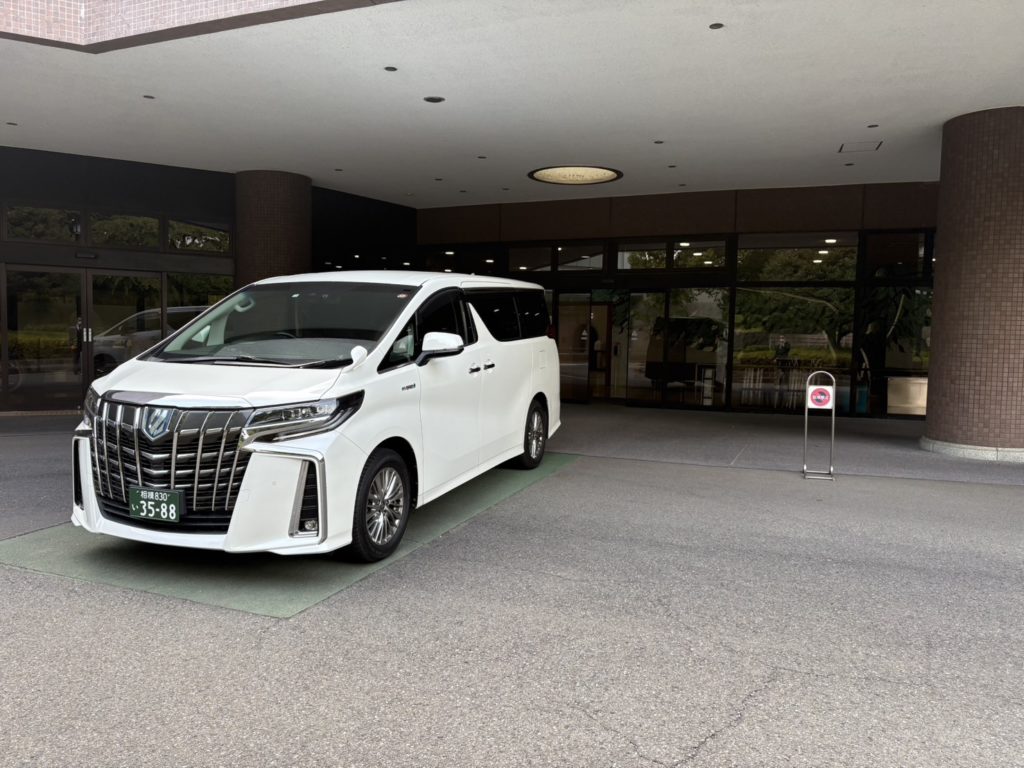 お棺を乗せた車両が斎場に到着します。